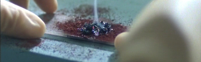 Back at base, Angie examines Pearce. He's lost weight due to lack of appetite, and has general fatigue, there's also a strange taste in his mouth. She asks him to pop down to the lab to run some more tests, but he asks for this to remain between them. She agrees to run them in his office later on.